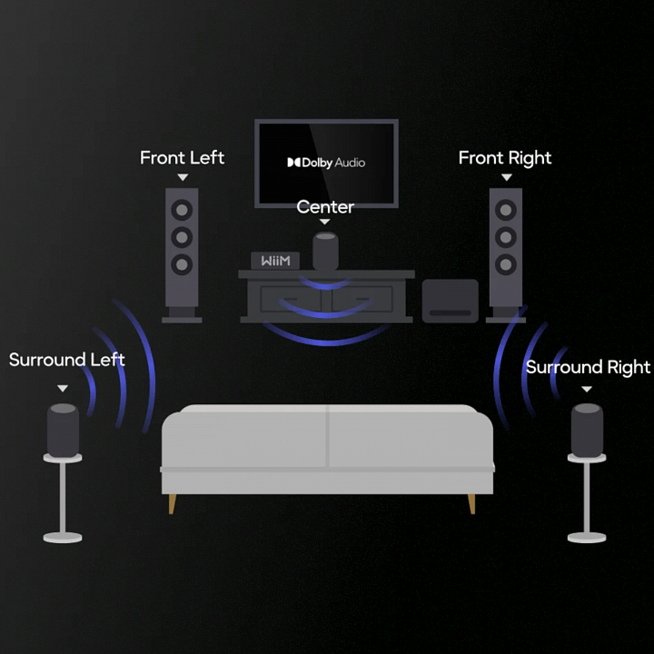 Reproduktor Sound funguje samostatně, ve stereo páru, efektové v domácím kině s vybranými WiiM produkty nebo jako součást celo-systémového ozvučení WiiM.