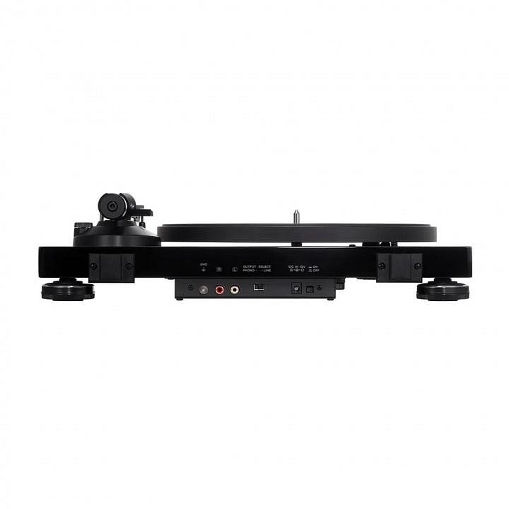 Kromě kvalitní ultralehkého karbonového raménka a inovativního řízení otáček motoru přesvědčuje gramofon o svých kvalitách také puritánsky řešeným napájecím zdrojem, který je kvůli minimalizaci rušení umístěn vně samotného těla gramofonu.