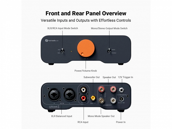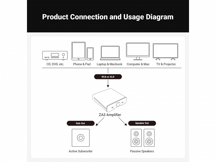 ZA3 byl navržen s ohledem na moderní audio systémy i profesionální využití. Disponuje RCA i XLR vstupy, prémiovými součástkami a pokročilým pasivním chlazením, které zajišťuje stabilitu při dlouhodobém provozu.