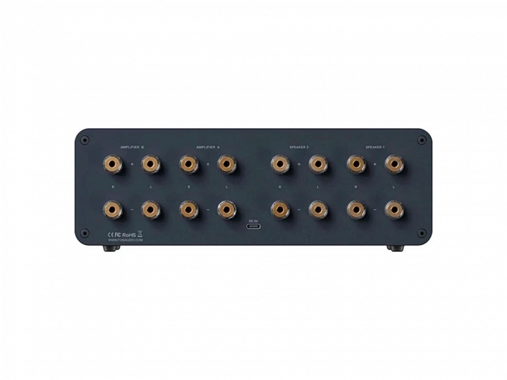 Bezpečný přepínač pro dva zesilovače a dva páry reprosoustav. Ochrana impedance, robustní konstrukce a spolehlivé terminály pro HiFi systémy
