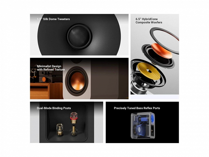 SP601 využívají 6,5" nízkofrekvenční měnič pro bas a středy a 1,5" textilní kalotový tweeter pro výšky. Výsledkem je vyvážená reprodukce, bez nepřirozeného zdůraznění či zahuhlanosti. Bass-reflex na zadní straně pomáhá rozšířit spodní pásmo bez ztráty kontroly, takže reprosoustavy působí „větší“, než ve skutečnosti jsou.