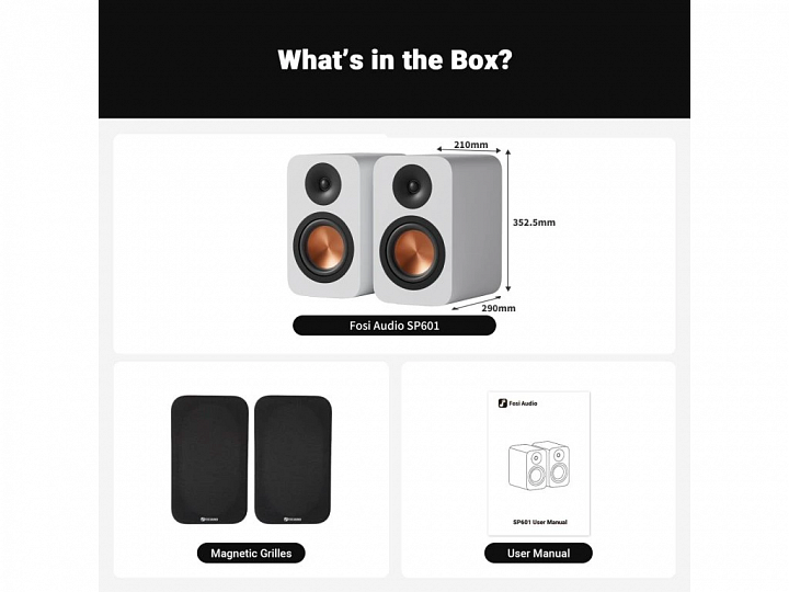 Fosi Audio SP601 jsou kompaktní dvoupásmové regálové reprosoustavy navržené pro domácí HiFi, stereo poslech i menší multimediální sestavy. Nabízí čisté výšky, příjemné střední pásmo a překvapivě pevný bas vzhledem ke své velikosti. Díky neutrálnímu ladění se hodí pro širokou škálu hudebních žánrů i filmový zvuk.