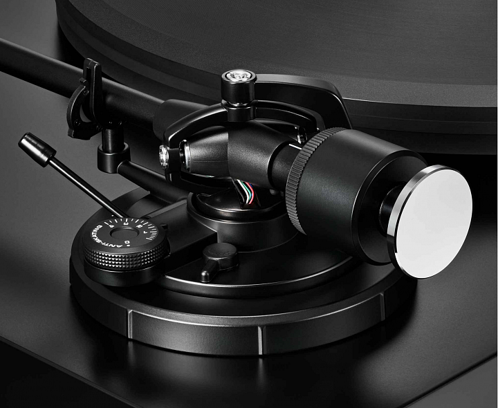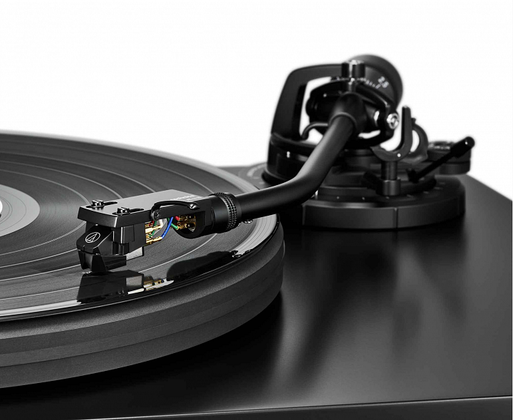 • Hliníkové raménko ve tvaru J: Raménko inspirované klasickými modely Audio-Technica ze 60. a 70. let využívá dvouosý gimbalový systém se špičkovými kuličkovými ložisky pro precizní sledování drážky. Významným prvkem je možnost nastavení vertikálního snímacího úhlu (VTA), což umožňuje dokonalé sladění s různými typy přenosek.