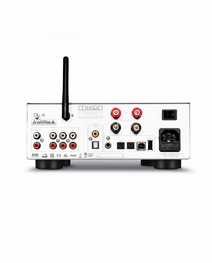Dnešní Mission 778X si zachovává vliv zjednodušeného ovládání, velkých ovládacích prvků a množství vstupů. Je to kompaktní integrovaný zesilovač inspirovaný 80. lety, který je plně vybaven tak, aby splňoval požadavky moderních milovníků hudby, od fanoušků vinylů až po digitální streamery. Moderní vychytávky, jako jsou LED indikátory úrovně a všestranné možnosti připojení, dělají z modelu 778X skutečně moderní integrovaný zesilovač. Může se pochlubit skutečným výkonem 65 W (@4 ohmy) prostřednictvím naprosto moderní a propracované signálové cesty podle standardů podobných příkladným standardům, podle kterých jsou vyvíjeny reproduktory Mission.