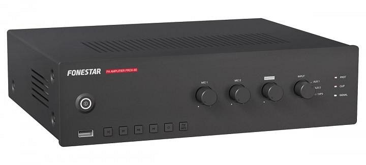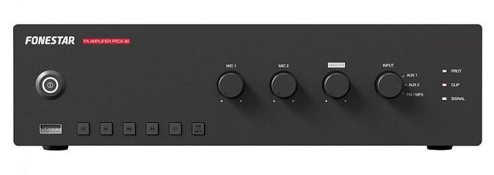 Univerzální 100 V PA zesilovač s výkonem 60 W RMS, USB a FM rádiem