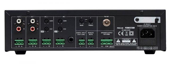 PA mono zesilovač s výkonem 60 W RMS pro veřejné ozvučení, který nabízí vynikající zvukové vlastnosti a množství vstupů a výstupů vhodných pro široké spektrum aplikací. PROX-60 představuje jednoduché a maximálně ekonomické řešení pro plošné ozvučení nebo systémy pro podkresovou hudbu ve spojení se 100 V nebo 4 Ω nízkoimpedančními reproduktory, např. obchodní prostory, vzdělávací centra, památky, výstavy, bary, restaurace atd.